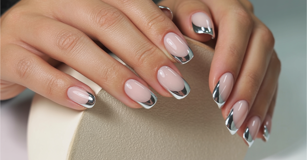 Nail chrome is a nail art technique that uses metallic powder to create a shiny, mirror-like finish on the nails.