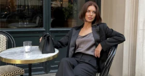 It’s a chic, feminine take on casual wear that’s perfect for a day out in the city or even a casual dinner. The simple yet stylish black crossbody bag is the ideal accessory, and it all comes together with that delicate necklace for a touch of sparkle.