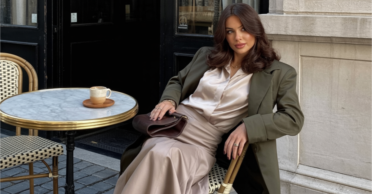 The neutral colors are so autumnal, and the way the outfit is paired with simple accessories keeps it sleek and sophisticated. It’s the ideal ensemble for a crisp autumn day, whether out for a stroll or meeting friends for brunch.