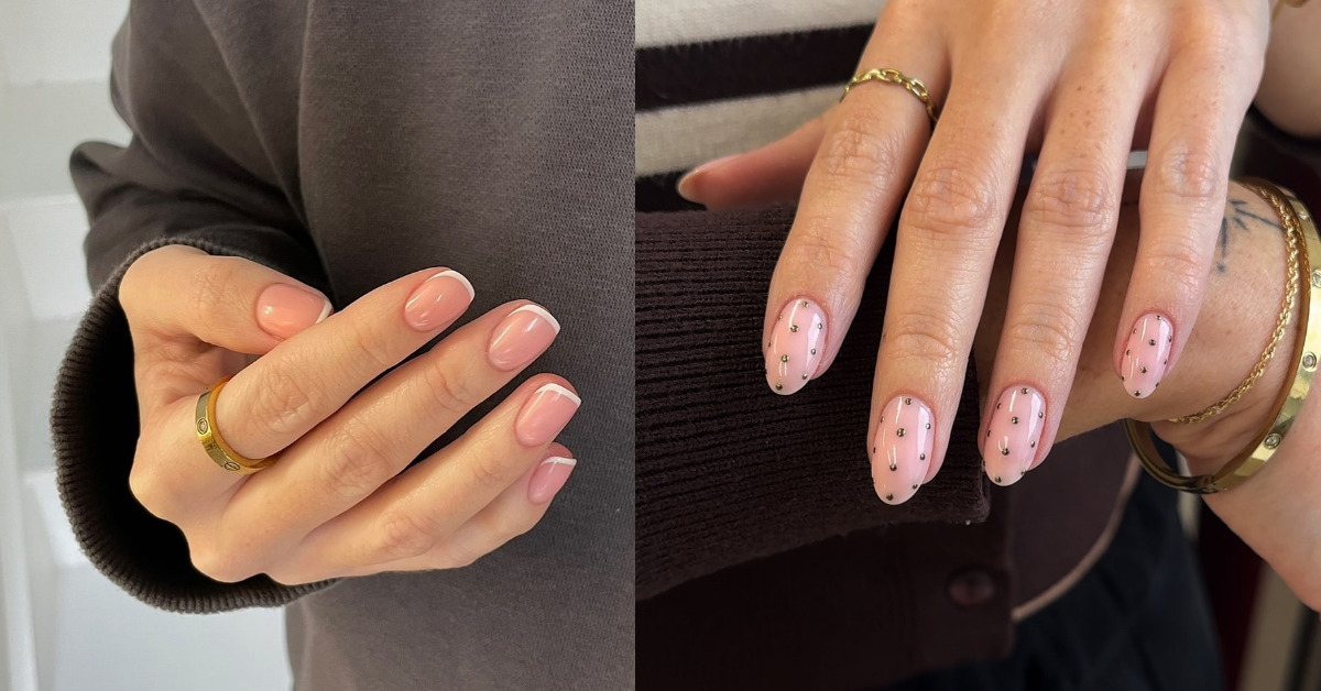 - short nails: micro French, baby chrome, sheer “soap” finishes, minimal decals