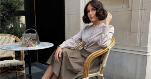 This outfit is pure elegance – I love the monochromatic look with the silk blouse and those perfectly tailored trousers. It’s such a luxurious combination that’s both understated and statement-making simultaneously.