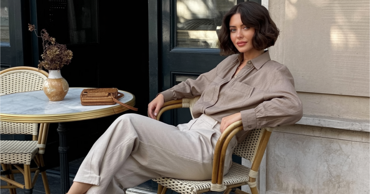 I’m living for this monochrome blue look with linen shorts! This linen pants outfit is perfect for a breezy coffee date on the patio. Pair with a crossbody bag and gold bangles for a relaxed, stylish vibe.